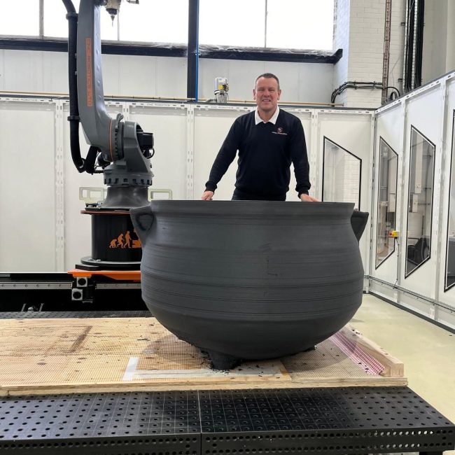• A KUKA robotic arm integrated with a CEAD S25 thermoplastic extruder