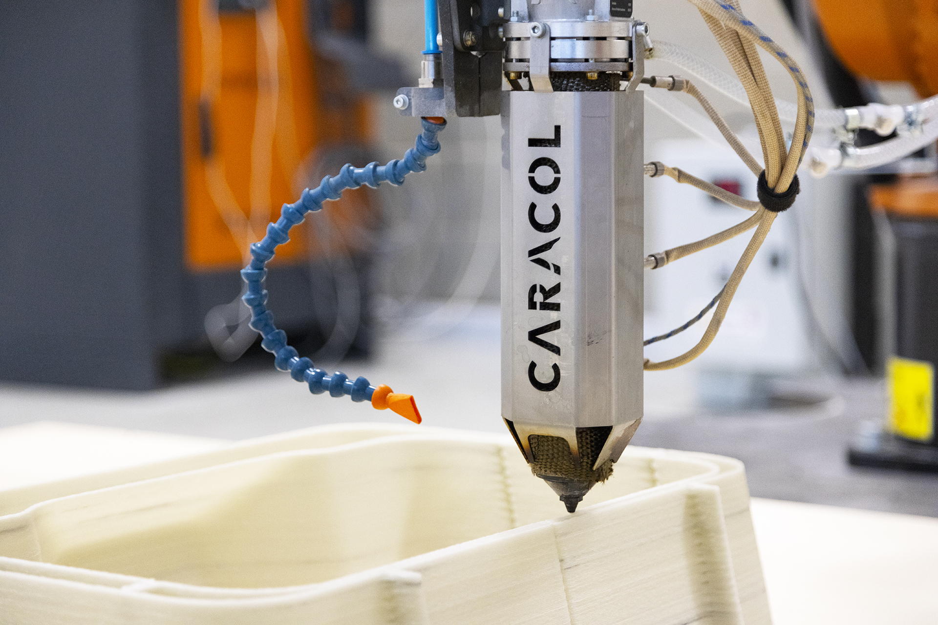 The Heron AM is Caracol's large format additive manufacturing (LFAM) platform for producing large, structurally complex composite components. A 6-axis robotic architecture combined with continuous fibre-compatible material extrusion enables processing of glass and carbon fibre-reinforced thermoplastics.